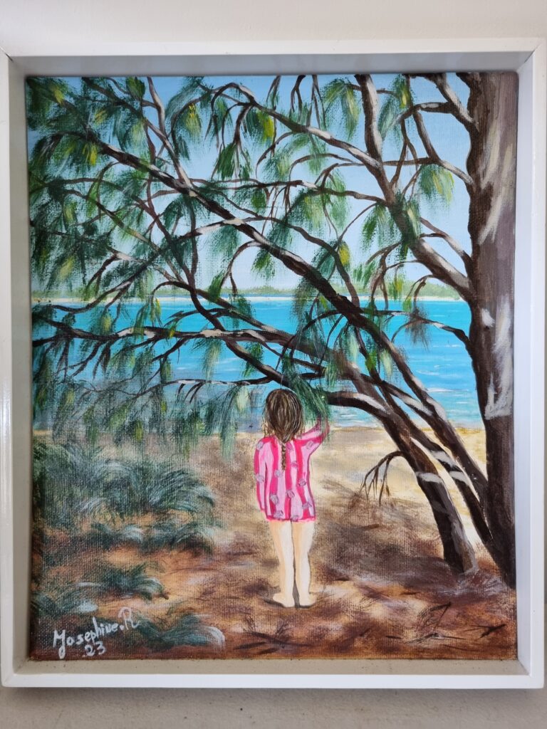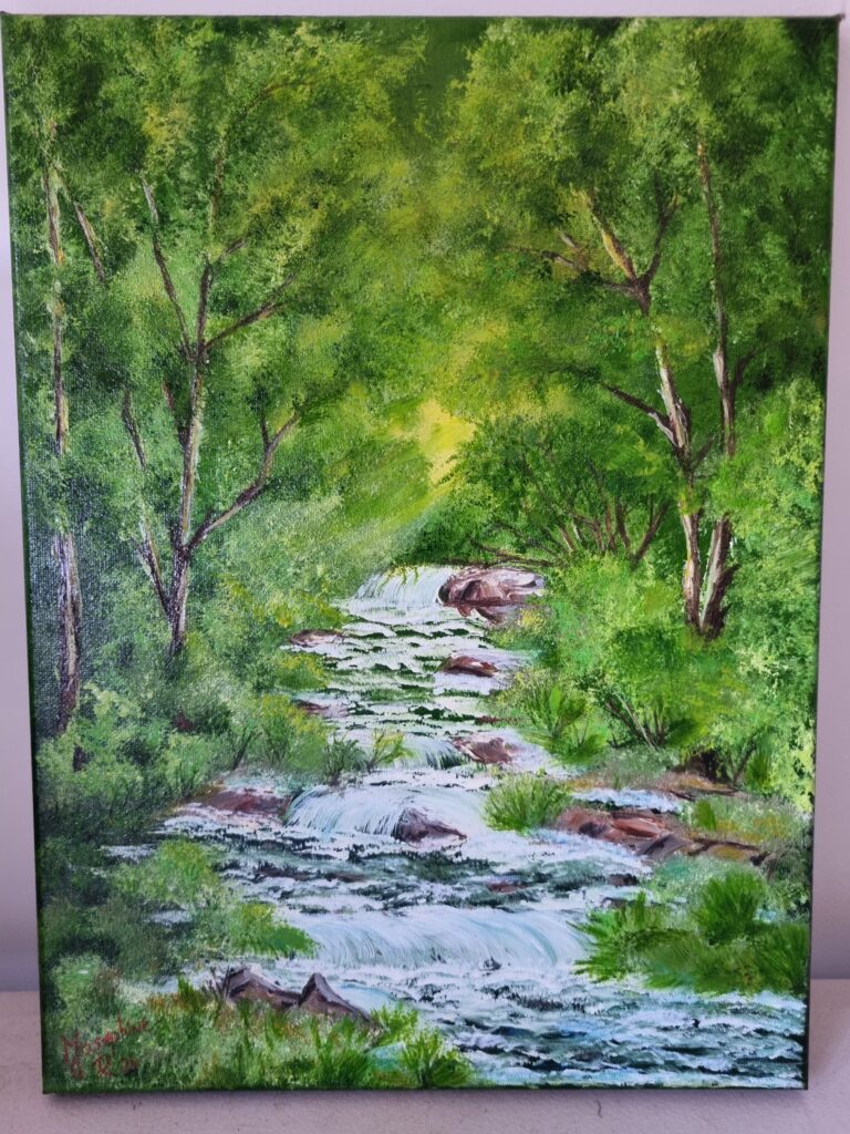 My art has progressed from sketching to my current love of painting – be it acrylic, oils and pouring, and from landscapes, street scenes, characters to animals, nature and the beach. I am continually growing as an artist and enjoy experimenting, improving and achieving.