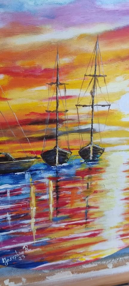 Hand painted sunset beach NOT print Josephine Robinson
